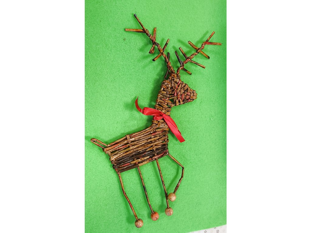 Ručně pletený výrobek z papírového pedigu, Zdobený vánoční dekorací. Barva hnědá. Výška 15cm