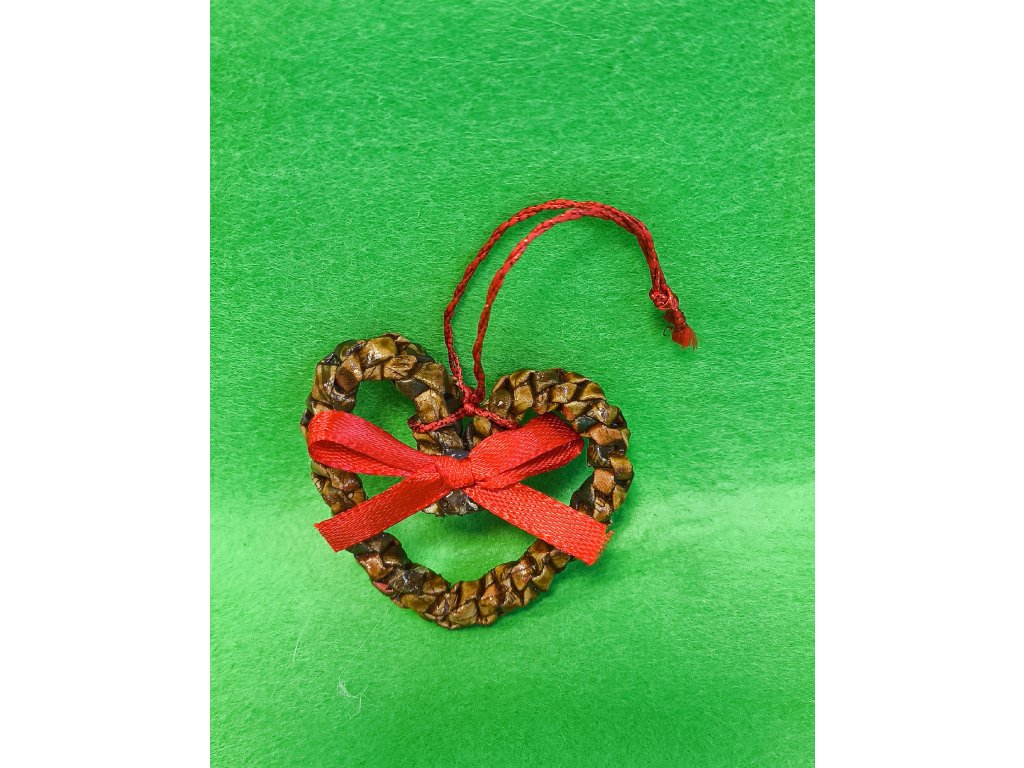 Ručně pletený výrobek z papírového pedigu, Zdobený vánoční dekorací. Barva hnědá. Průměr 10cm